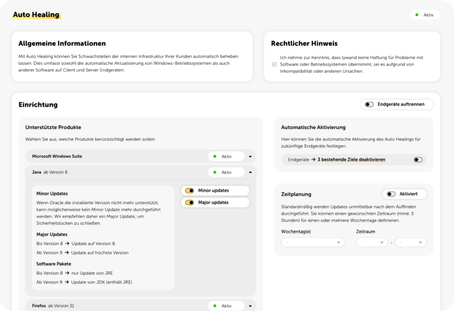 Definieren Sie, welche Bereiche Ihrer Verantwortung im Rahmen des Servicevertrags unterliegen und welche nicht. So werden Ihre Leistungen individuell bewertet, der Mehrwert für Kunden sichtbar – und Sicherheitsrisiken außerhalb Ihres Verantwortungsbereichs lassen sich gezielt als Ansatz für Upselling nutzen.