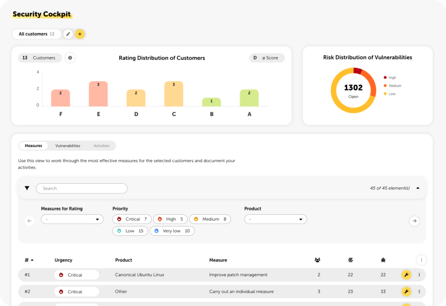 Per il controllo e il miglioramento automatizzati della sicurezza IT dei vostri clienti di piccole e medie dimensioni.