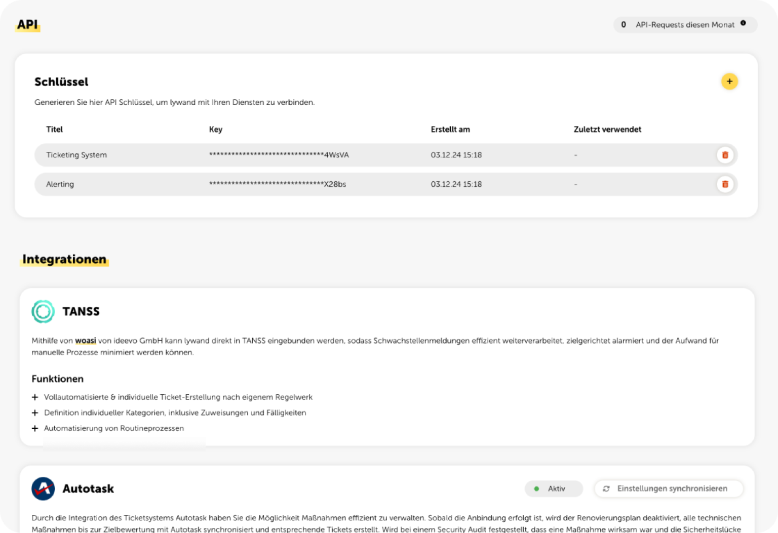 Che si tratti di sistemi di ticketing o di piattaforme di comunicazione, la nostra API aperta offre infinite possibilità per integrare Lywand senza problemi nei vostri flussi di lavoro.