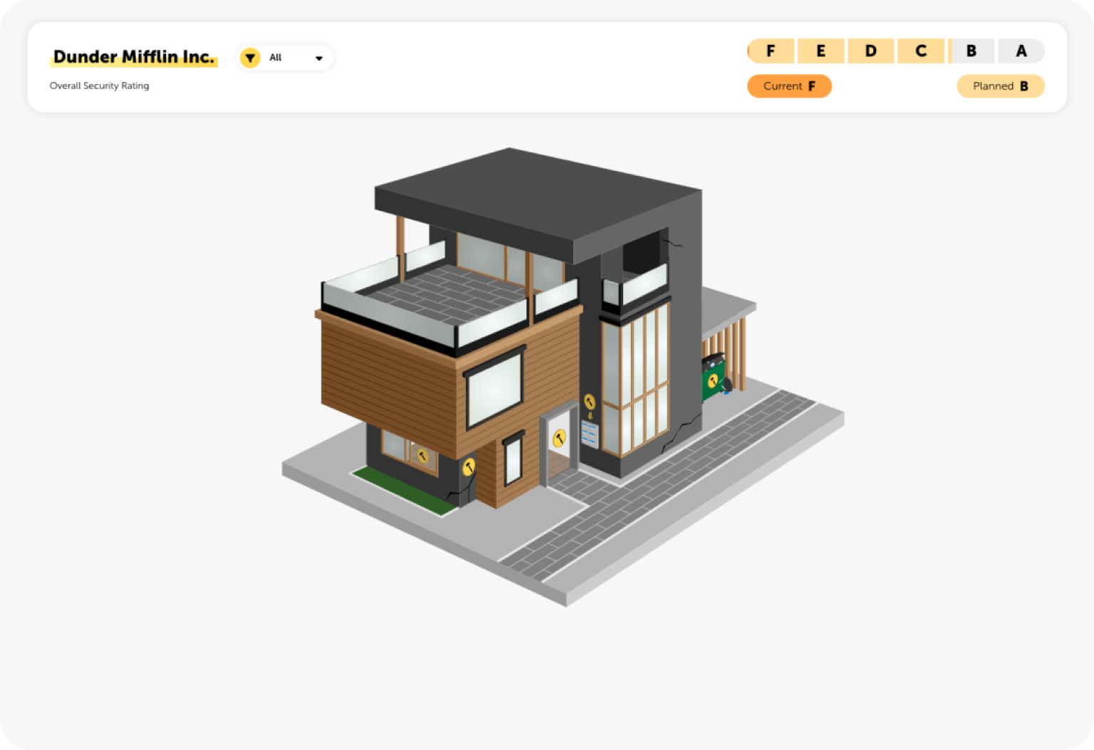 Per semplificare la comunicazione con i vostri clienti, abbiamo sviluppato una nostra analogia. Utilizzando l'esempio di una casa, è possibile spiegare in termini semplici qual è lo stato della sicurezza.