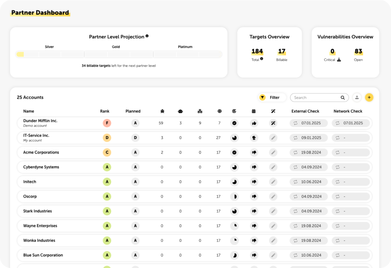Lywand propone misure mirate per migliorare la sicurezza IT. Il security cockpit a livello di partner consente di ottimizzare in modo efficiente la sicurezza IT di tutti i clienti.